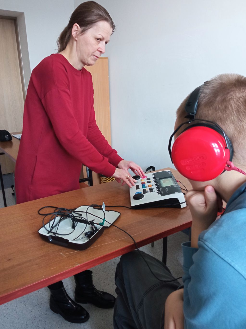 Pani Anna Pawluczuk (surdologopeda, protetyk słuchu) dla chętnych uczniów i nauczycieli przeprowadziła w listopadzie badanie słuchu - audiometrię tonalną. Badanie pozwoliło stwierdzić, jak dobrze badana osoba słyszy. Umożliwiło również wczesne wykrycie ewentualnych nieprawidłowości oraz zaplanowanie dalszej diagnostyki lub terapii. Każdy uczestnik otrzymał informację zwrotną dotyczącą wyników badania oraz wskazówki dotyczące dbania o słuch. Na tablicy ogłoszeń Branżowej Szkoły I stopnia został zawieszony plakat kampanii społecznej „Słucham i słyszę” na rzecz zapobiegania chorobom narządu słuchu wśród pracowników w celu zwiększenia świadomości na temat znaczenia profilaktyki słuchu zarówno wśród uczniów, jak i kadry pedagogicznej.