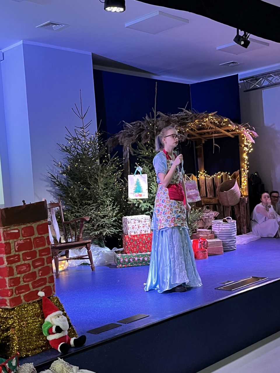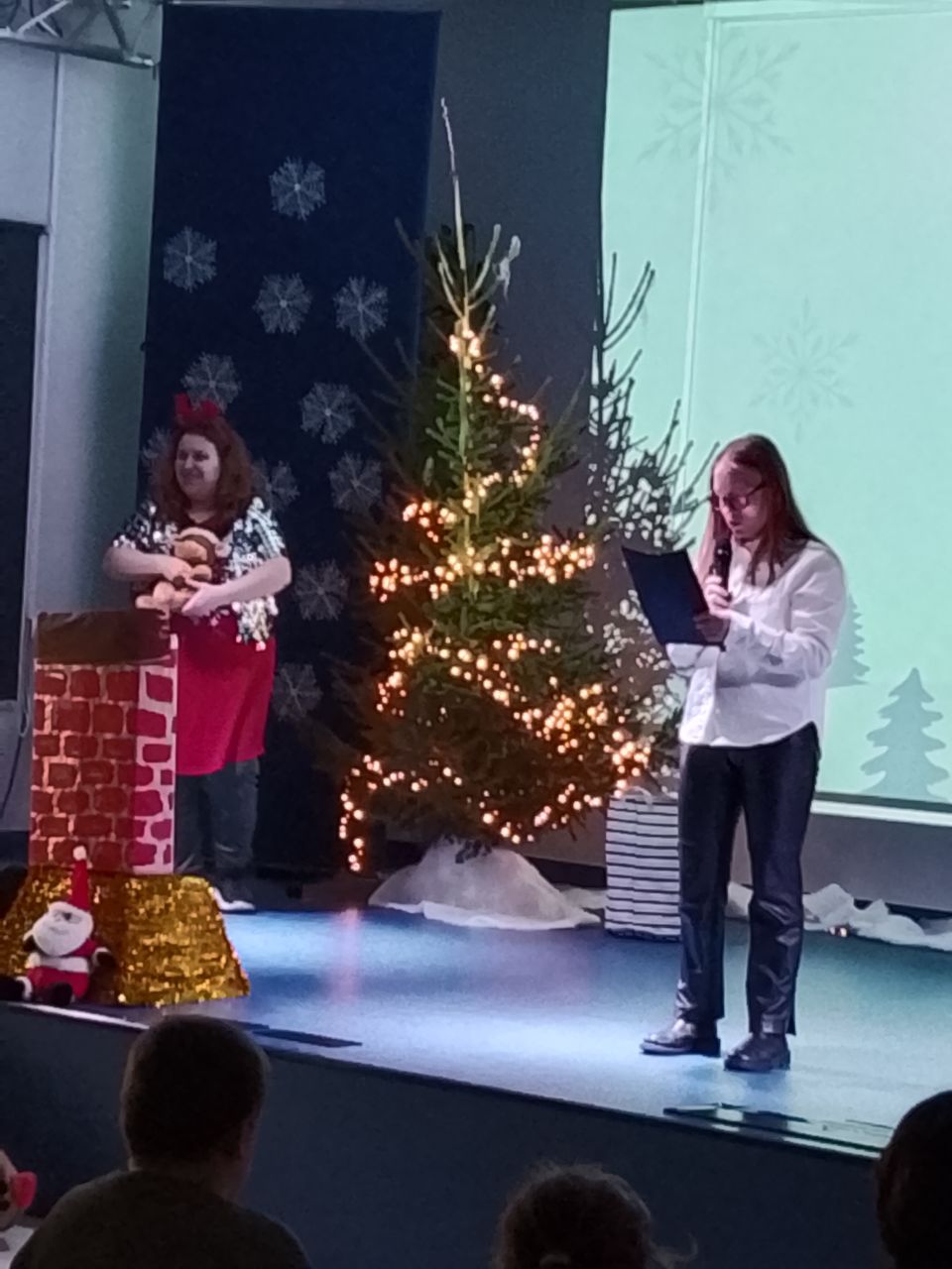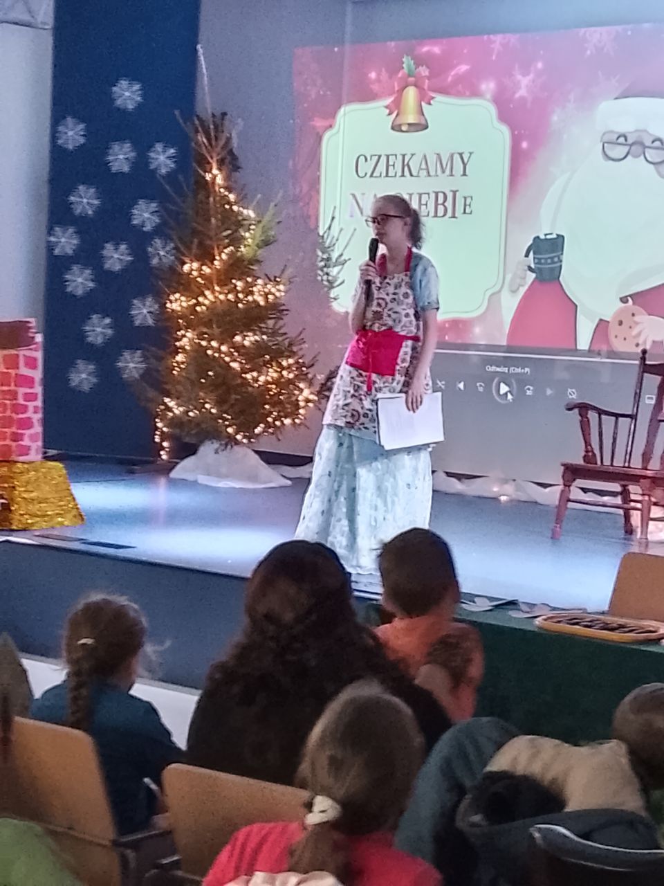 Przedstawienie wprowadziło wszystkich widzów w nastrój słowami "Nadeszła już zima, w kalendarzu grudzień… To czas radosny przy zielonej choince, gdy gwiazdka zaświeci na niebie. Święty Mikołaj przychodzi do wszystkich dzieci. Cii, posłuchajcie, słychać dzwoneczki. Och! To Mikołaj ciągnie saneczki. A na tych sankach zabawki dla nas ma! Zaraz rozdam prezenty… są tu dzieci ale ich wiele… co za radość dla mojego serca… Tak się cieszę kochani, bo jestem tu z wami…"