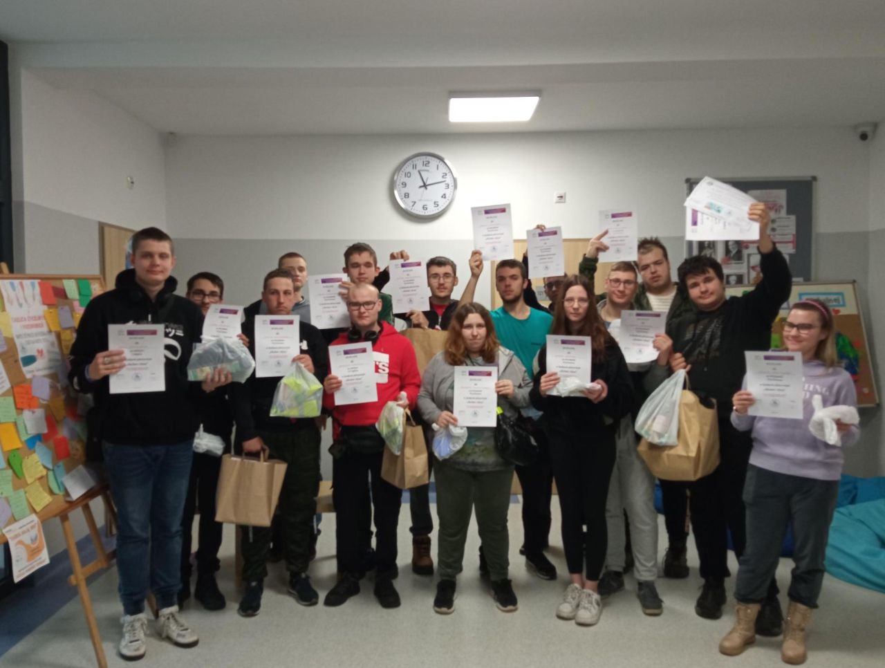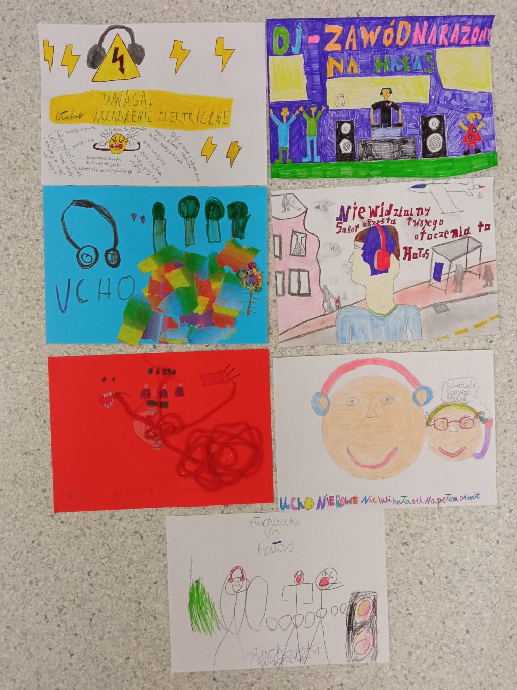W ramach realizacji celów kampanii społecznej "Słucham i słyszę" na rzecz zapobiegania chorobom narządu słuchu wśród pracowników uczniowie naszego Ośrodka wraz z nauczycielami w październiku 2025 r. wzięli udział w warsztatach o hałasie pod nazwą "Świat pełen dźwięków" zorganizowanych przez Szkołę Leśną na Barbarce. W trakcie zajęć omówione zostały m.in. źródła hałasu w najbliższym otoczeniu, skutki długotrwałego narażenia na hałas, sposoby ograniczania hałasu i ochrony narządu słuchu. Uczniowie projektowali konstrukcje dźwiękochronne, a także szukali rozwiązań na codzienne dbanie o słuch. W listopadzie zorganizowano konkurs plastyczny dla uczniów Branżowej Szkoły I st. oraz Szkoły Przysposabiającej do Pracy. Celem konkursu było zwrócenie uwagi dzieci i młodzieży na problematykę hałasu oraz znaczenie dbania o słuch. Uczestnicy przygotowali prace plastyczne przedstawiające sposoby ochrony słuchu, ostrzegania przed hałasem, a także zawody, które szczególnie narażone są na hałas. Uczestnicy konkursu oraz laureaci otrzymali nagrody i dyplomy. Informacje dotyczące konkursu zostały umieszczone na szkolnym fb. W dniu 04.11.2025 r. nauczycielki Anna Pawluczuk i Mieczysława Jankowska przeprowadziły szkolenie warsztatowe dla nauczycieli w ramach WDN (Wewnątrzszkolnego Doskonalenia Nauczycieli), w którym wzięło udział 15 nauczycieli. Podczas szkolenia omówiono podstawy funkcjonowania narządu słuchu, najczęstsze zagrożenia środowiskowe, metody edukacji dotyczącej ochrony słuchu, sposoby reagowania na niepokojące objawy mogące świadczyć o zaburzeniach słuchu, a także jak pracować z uczniem z CAPD (centralnym zaburzeniem przetwarzania słuchowego). Nauczyciele otrzymali materiały dydaktyczne oraz zestaw dobrych praktyk do wykorzystania podczas zajęć lekcyjnych.